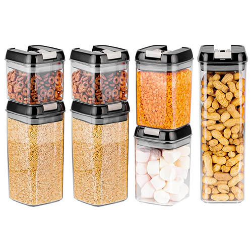 Esse kit conta com 7 potes pensado para otimizar espaço. Seu formato permite empilhamento seguro, deixando armários e prateleiras mais arrumados. Fabricados com material resistente e de fácil higienização, são ideais para o dia a dia de quem busca manter a cozinha bem-organizada e os alimentos sempre bem conservados.