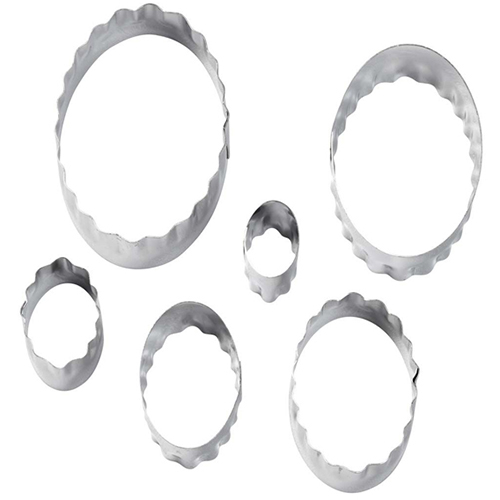 O Kit de Cortadores Duplos Ovais Inox 6 peças da Konfektt é ideal para confeiteiros que desejam criar formas ovais com precisão e variedade. Com seis tamanhos diferentes, permite composições decorativas versáteis em biscoitos, massas e pasta americana, oferecendo opções para sobreposição e preenchimento criativo.