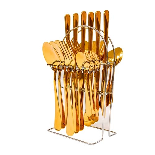 O Kit de Talheres 25 Peças Inglaterra Golden da Ke Home é ideal para compor sua mesa com elegância e praticidade. Fabricado em aço inoxidável, o conjunto inclui facas, garfos, colheres de mesa e colheres de chá, além de um suporte organizador que facilita o armazenamento e o uso diário. Seu acabamento prateado confere um toque moderno e discreto à decoração.