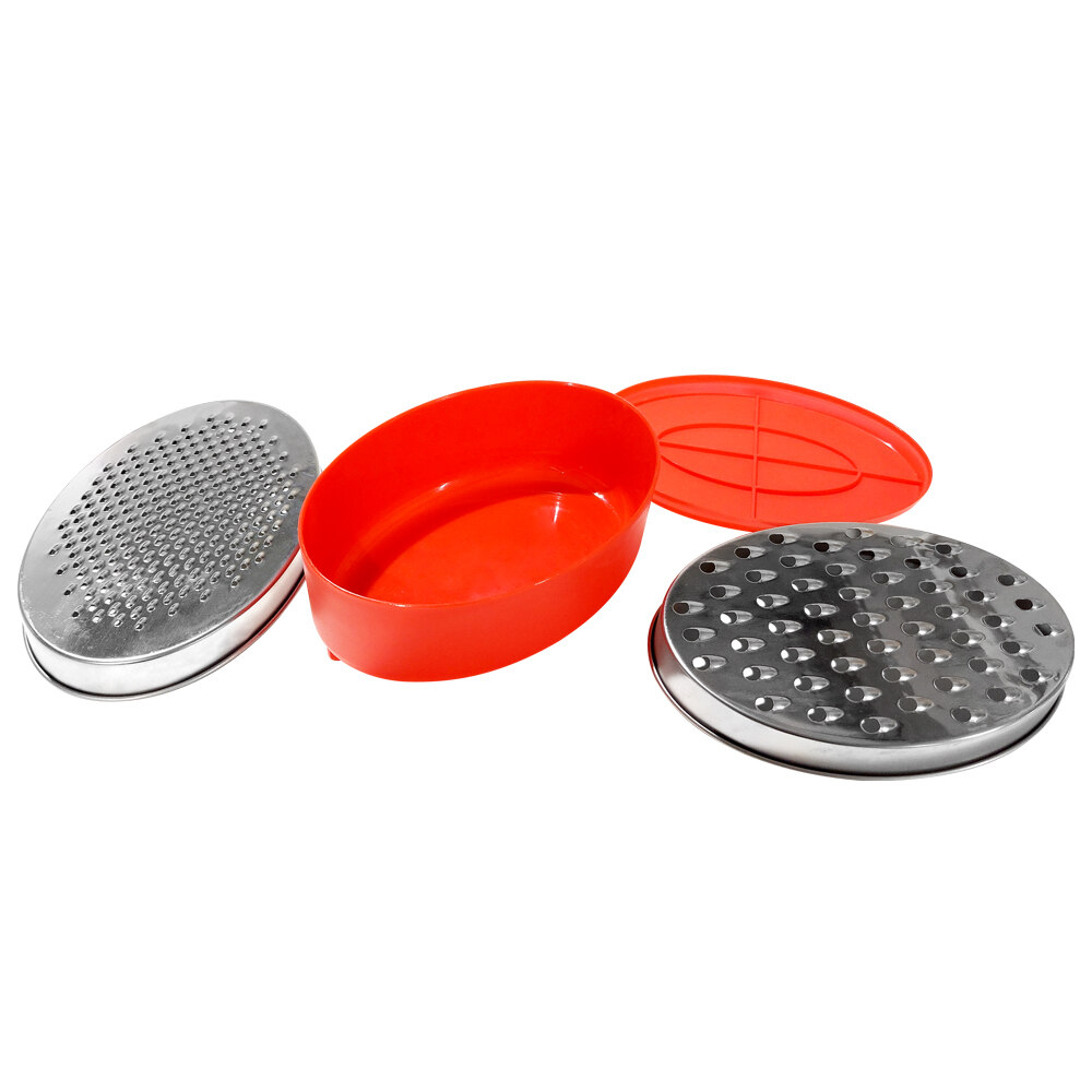 O Ralador 2 em 1 oval e é um utensílio prático e versátil, ideal para ralar queijos, legumes, frutas e temperos com diferentes texturas em um único acessório. Seu design compacto facilita o manuseio e proporciona cortes uniformes, tornando o preparo das receitas mais ágil e eficiente.